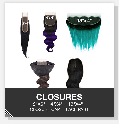 - CLOSURES CROWN CLOSURE LACE PART CLOSURE 4"X4" LACE CLOSURE LACE FRONTAL CLOSURE 360 LACE CLOSURE